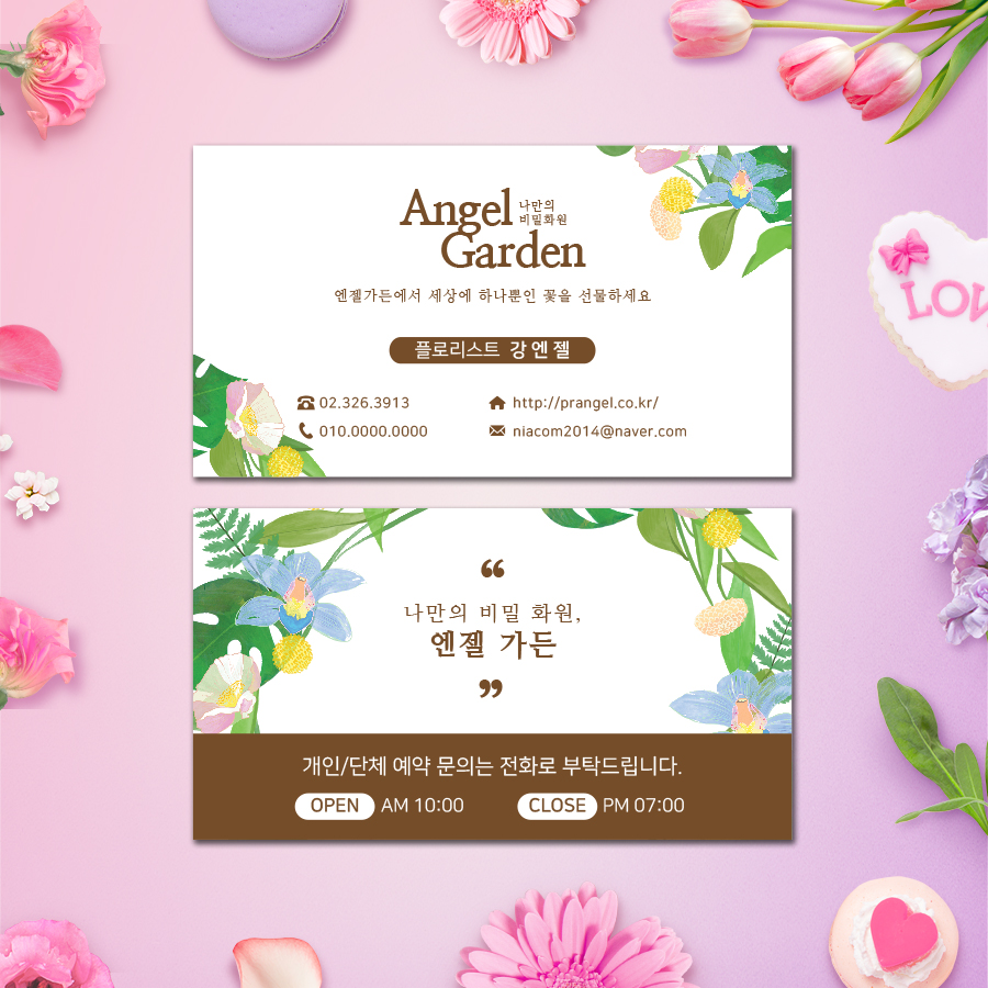 🌸 엔젤가든 플로리스트 감성 카페 명함 디자인