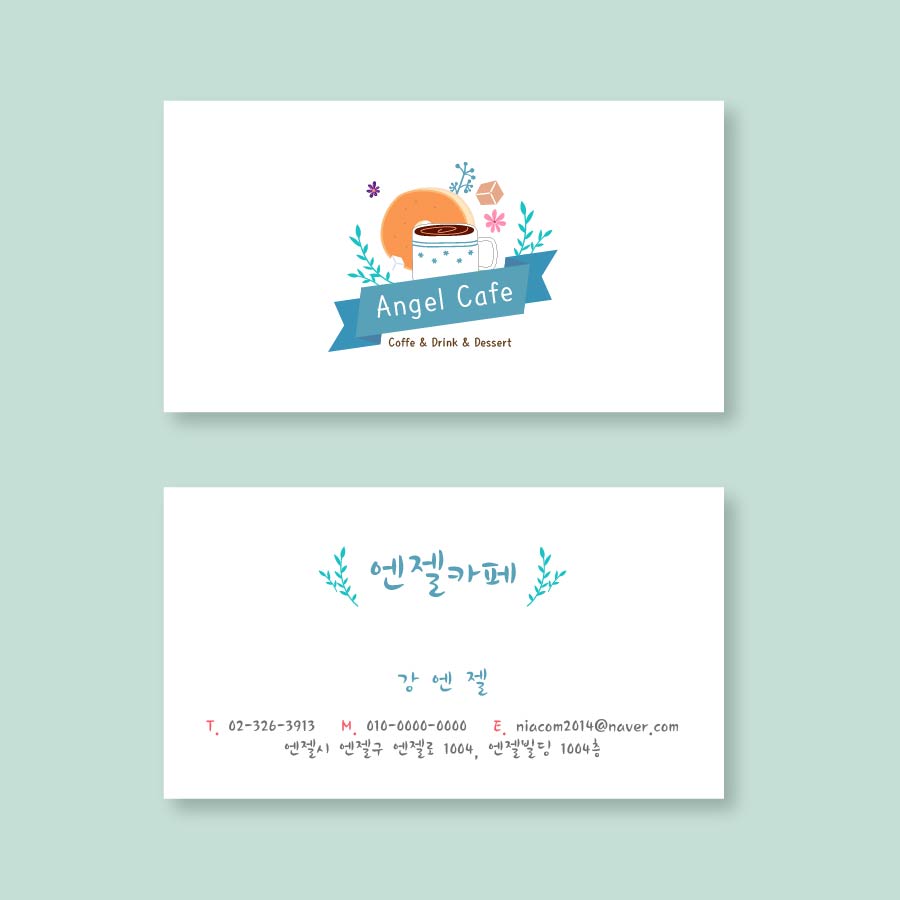 🌿 민트 포인트 감성 카페 명함 디자인