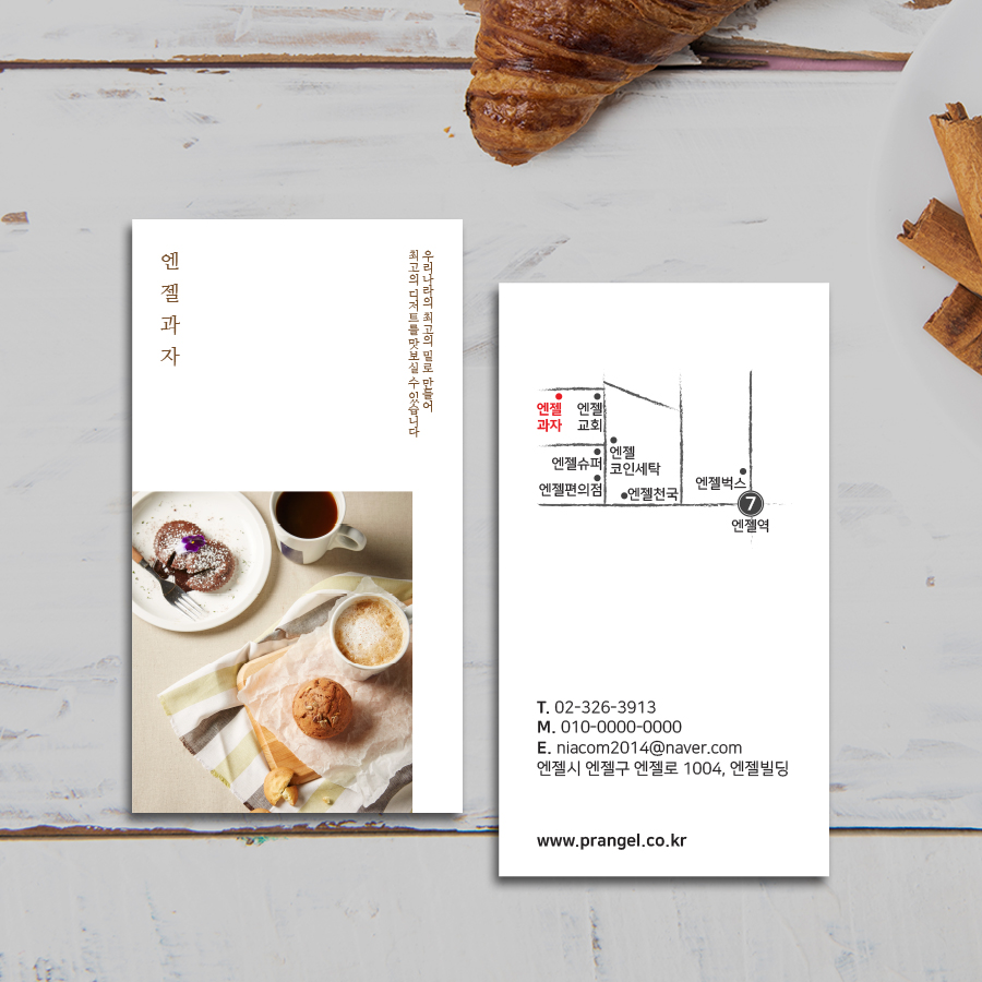 빵집 명함, 베이커리 명함을 고민하신다면 이미지와 분위기를 함께 담은 구성을 함께 참고해 보셔도 좋겠습니다. 특별한 약도 구성은