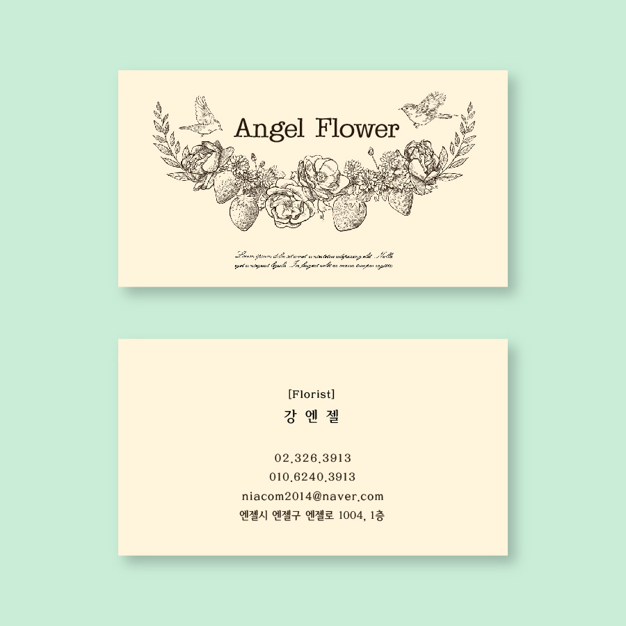 봄 시즌 꽃집이나 꽃가게에 특히 잘 어울리는 스타일로, 부드럽고 따뜻한 이미지를 전달하고 싶으신 분들께 추천드릴 수 있는 명함이에요 🌸